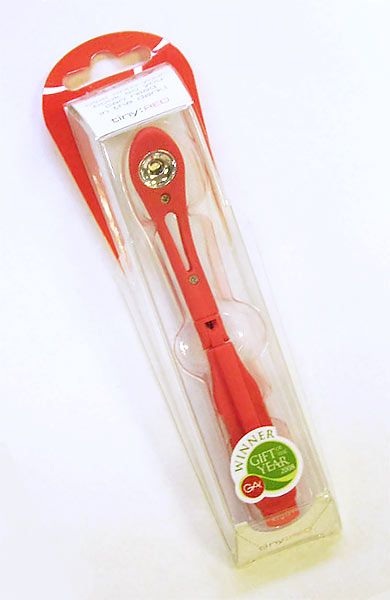 “The Really Tiny Book Light” red clips discreetly onto the pages of your book so you can indulge your late-night reading habits without disturbing others or straining your eyes.
